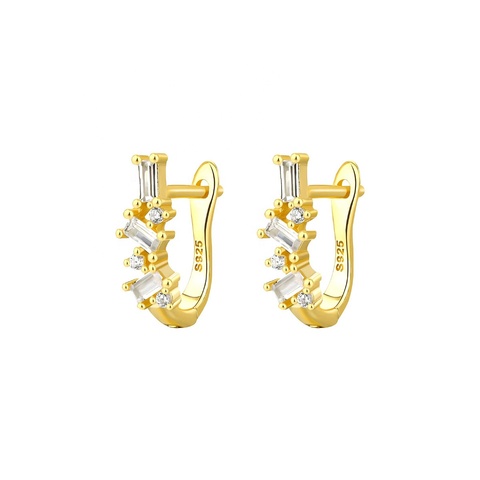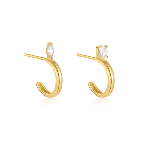Minimalist Style Fashion Trendy 925 Sterling Silber vergoldeter Schmuck Einzelne Zirkonia Einfache Creolen für Frauen