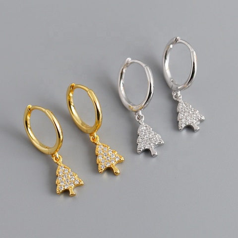 Minimalisti scher Schmuck Zierlicher Weihnachts baum Design Premium Sterling Silber vergoldete Zirkonia Creolen für Frauen