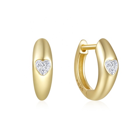 925 Sterling Silber vergoldet Modeschmuck Einfache Liebe Herz Zirkonia Design Minimalist ische Creolen für Frauen