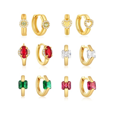 Edler Schmuck Sterling Silber vergoldet geometrisch geformte kubische Zirkon Creolen Minimalist ische Huggie Ohrringe für Frauen