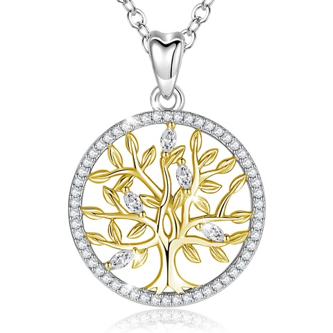 18K Vergulde 925 Sterling Zilveren Levensboom Hanger Ketting Klassiek Uitgehold Ontwerp Met Zirkoon Voor Dames Of Heren