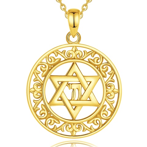 Religieuze Sieraden 925 Sterling Zilver 18K Vergulde Ster Van David Hanger Ketting Met Joodse Hebreeuws Letter Chai Symbool