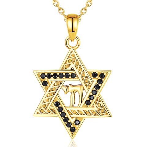 925 Sterling Zilver 18K Vergulde Zwarte Zirkonia Joodse Ster Van David Hanger Amulet Ketting Voor Mannen Of Vrouwen